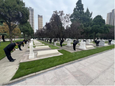活动在中原英烈纪念馆开启,全体人员共同观看了《解放郑州之歌》视频,参观逐鹿中原——解放战争厅,在讲解员深情的讲述中追忆那段战天斗地、不畏牺牲的峥嵘岁月。大家将自己对英烈的缅怀崇敬之情写在一张张留言卡上,用红丝带细心的绑扎在鲜花上。随后,全体人员步行至解放郑州纪念碑亭,肃穆站立向解放郑州纪念碑鞠躬致敬。郑州烈士陵园工作人员向全体人员发放红色文化书签,勉励大家“以吾辈之青春 捍卫这盛世之中华”。怀着对先烈们的无限崇敬与深切缅怀之情,全体人员将一支支寄托哀思的鲜花敬献在烈士墓前。